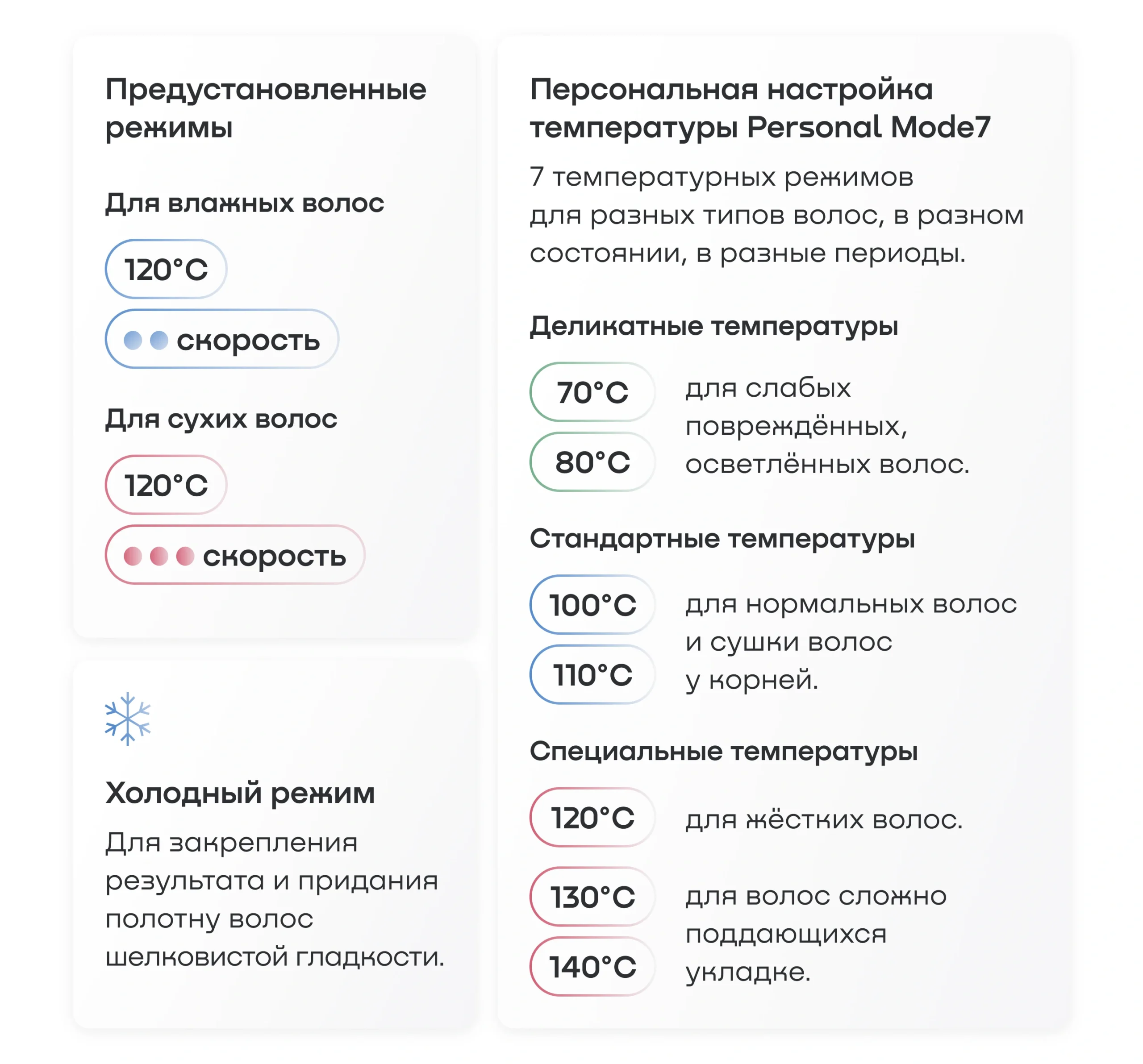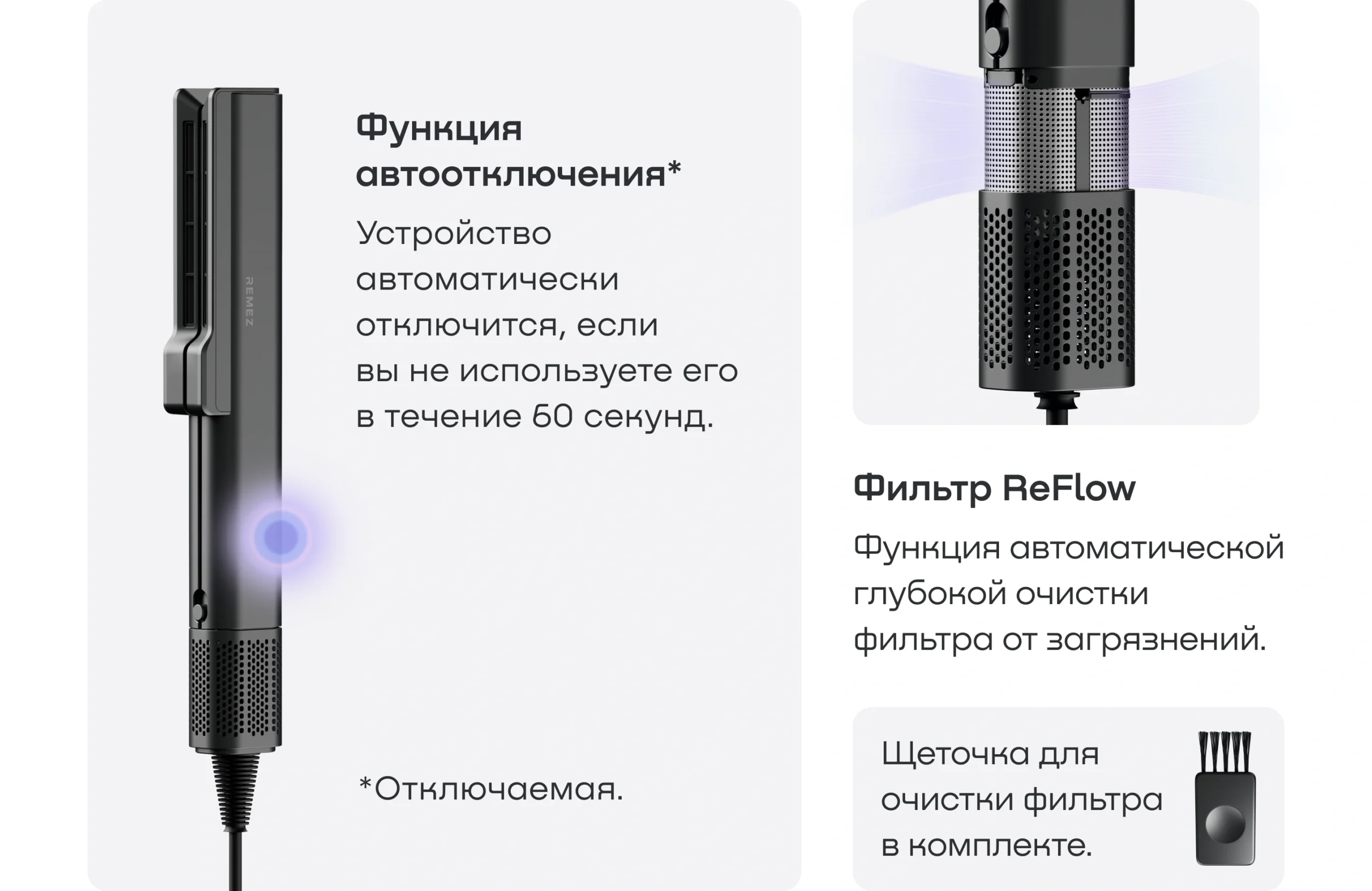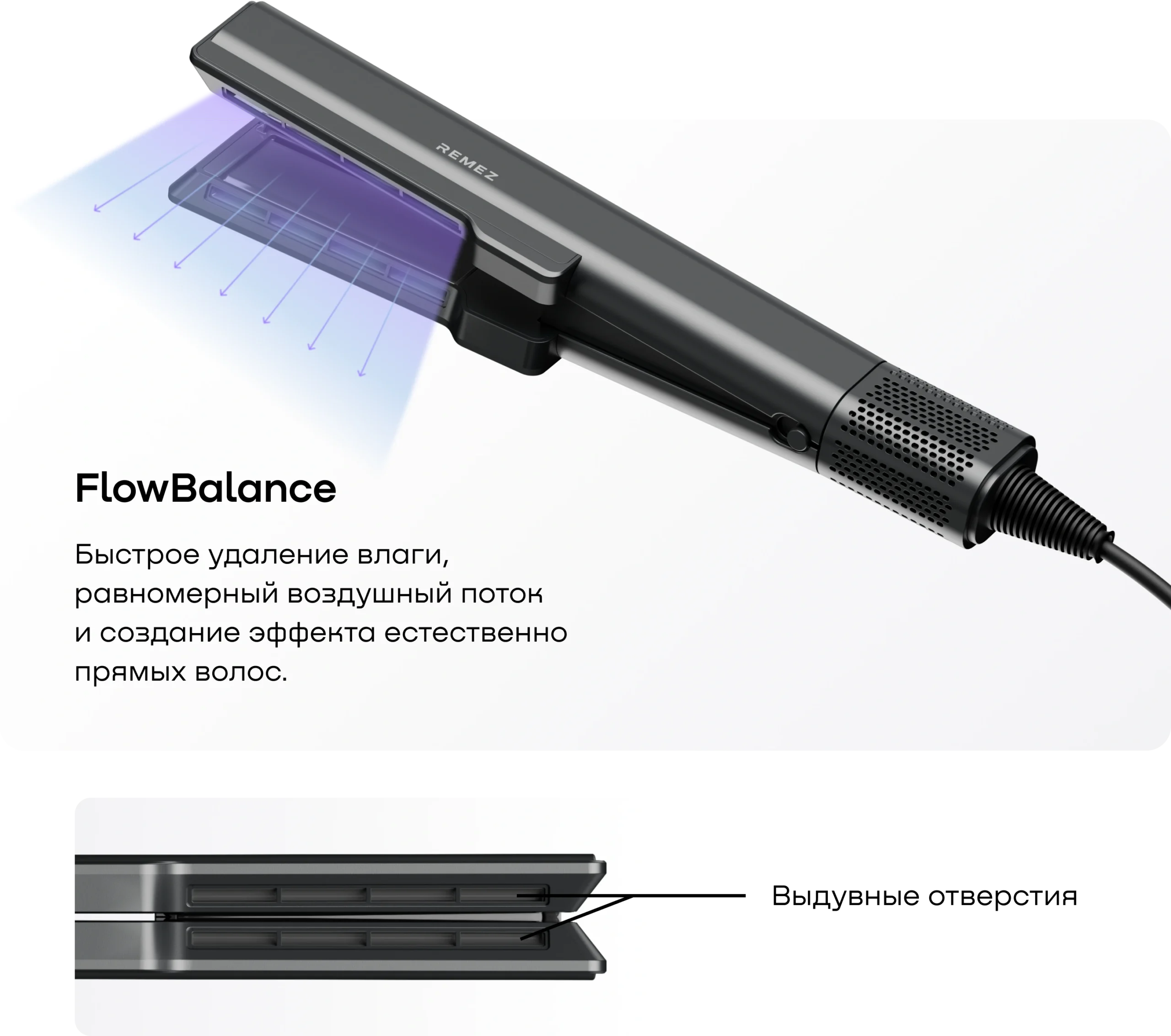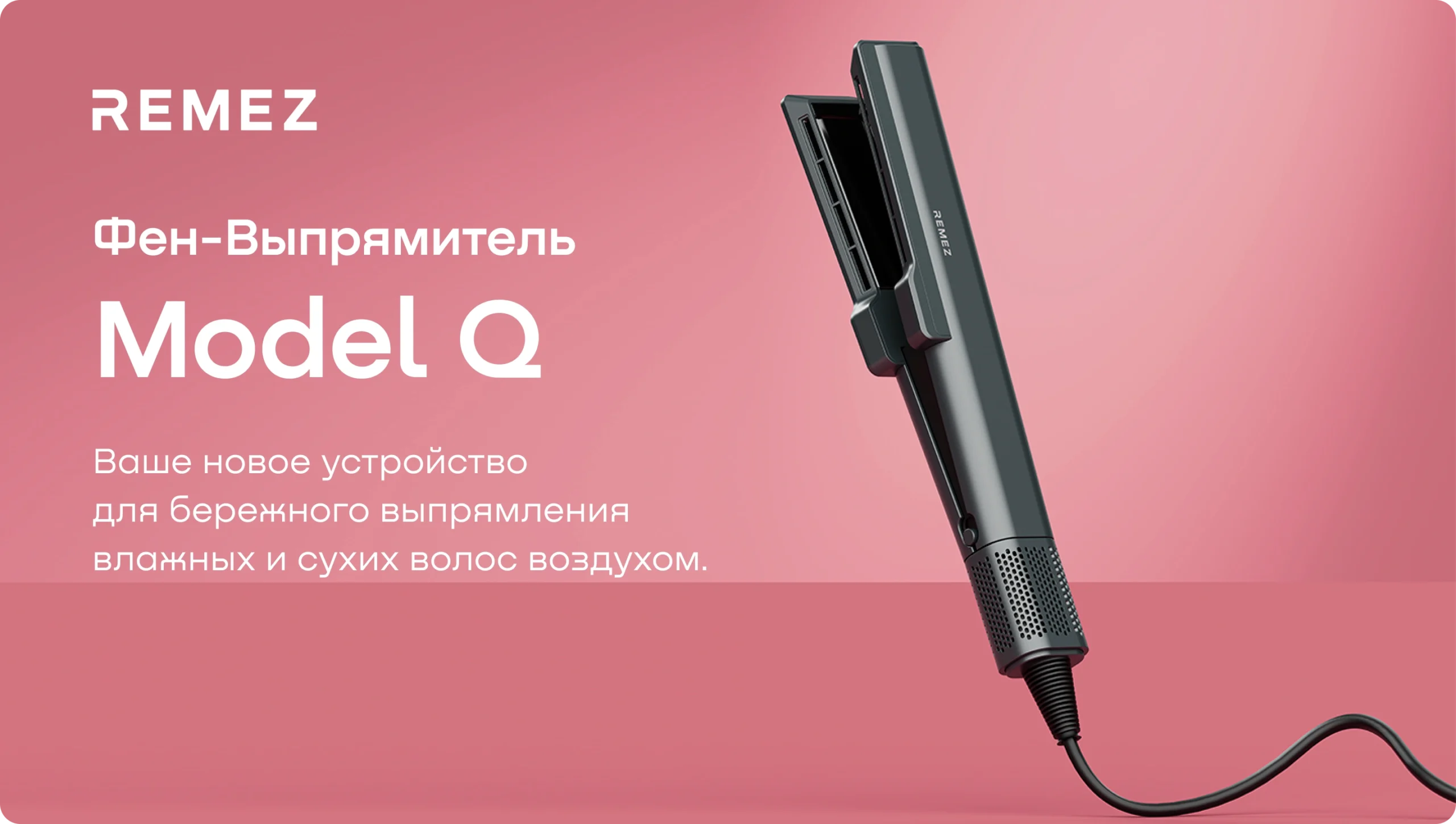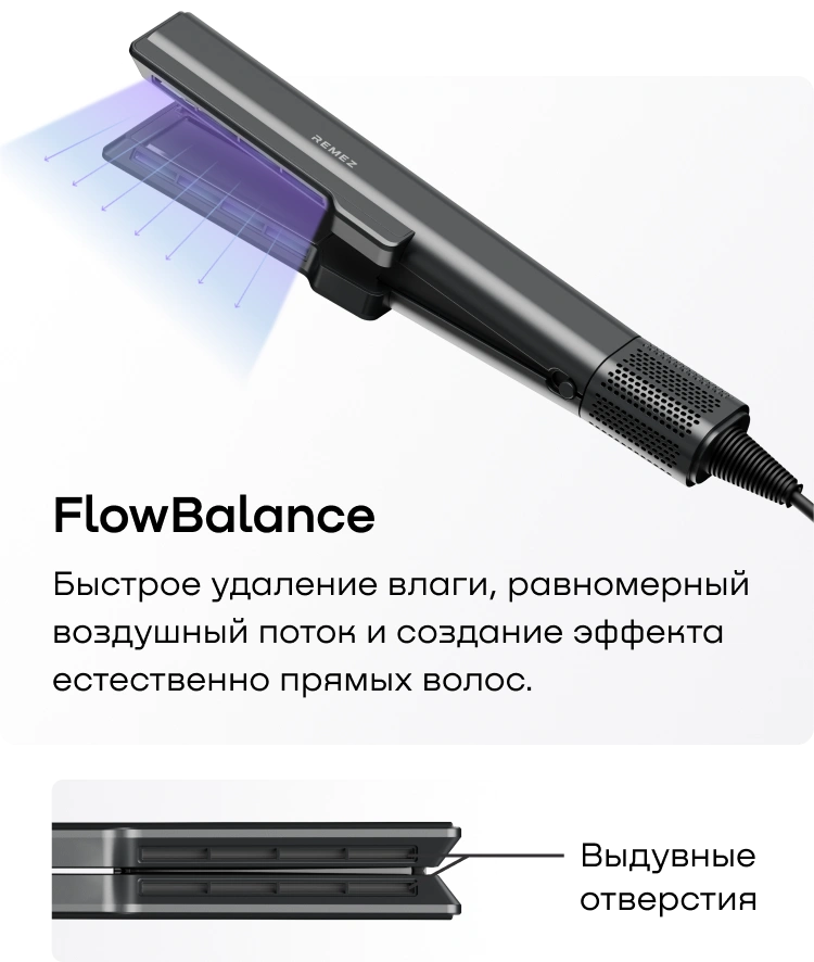 Выпрямитель-фен REMEZ Model Q оснащен режимами работы как для влажных, так и для сухих волос.