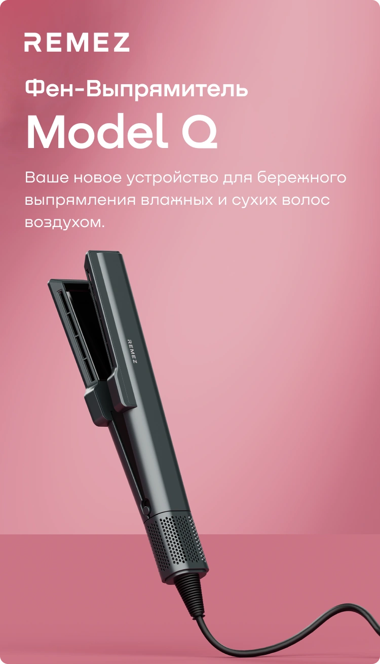 Выпрямитель-фен REMEZ Model Q не имеет режима накрутки волос и не подойдет для этого, так как выпрямление происходит благодаря направленному потоку воздуха, а не нагреву пластин.