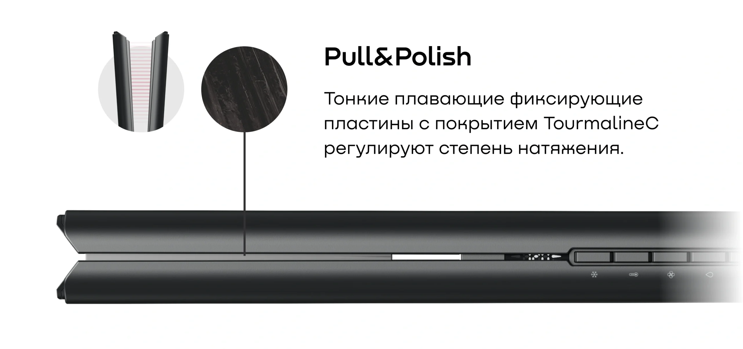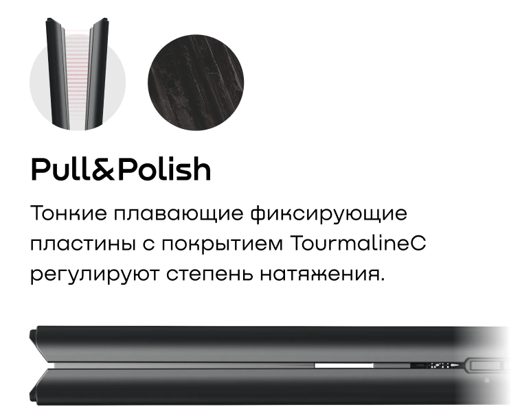 Фен-выпрямитель REMEZ Model Q выпрямляет волосы за счет направленного потока воздуха, пластины при этом не нагреваются. В конструкции устройства вокруг плавающих турмалиновых пластин есть выступающее ребро, которое позволяет захватить прядь и натянуть ее. Таким образом волосы практически не соприкасаются с пластинами.
